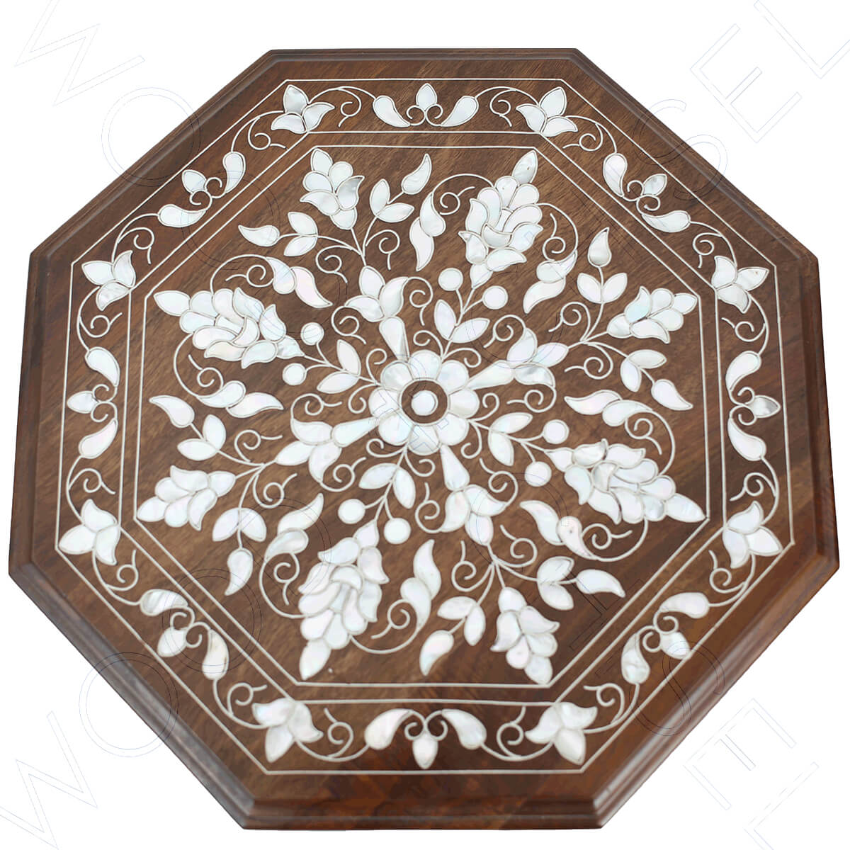 The table top boasts an intricate floral design, carefully handcrafted to perfection. The delicate patterns are elegantly interspersed with genuine inlaid mother of pearl, creating a mesmerizing interplay of light and beauty. Each glance reveals the meticulous attention to detail poured into this masterpiece. ✨🐚