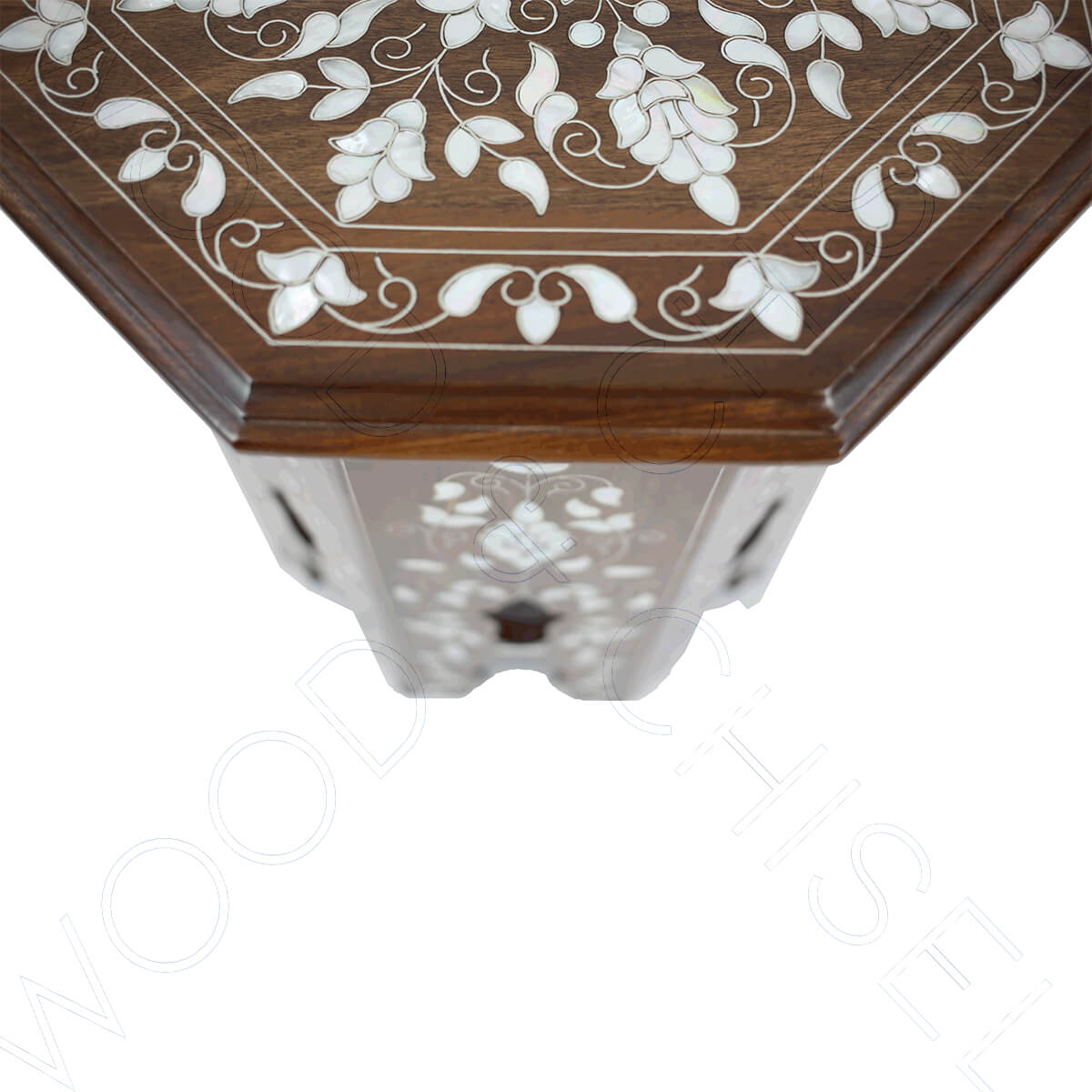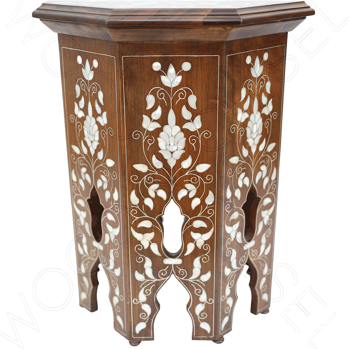 Introduce a touch of elegance and cultural richness to your living space with our exquisite octagonal coffee table, meticulously crafted from fine Syrian-stained walnut wood. This masterpiece is a testament to the seamless fusion of traditional oriental motifs and modern design, creating a harmonious and captivating centerpiece for your home. 🏺✨