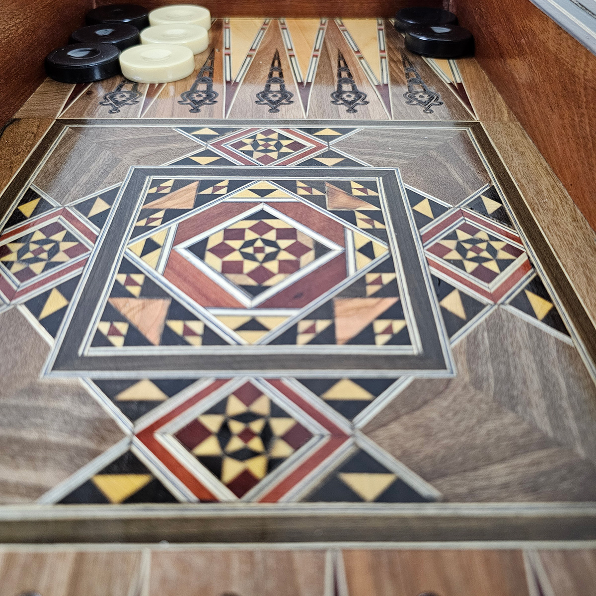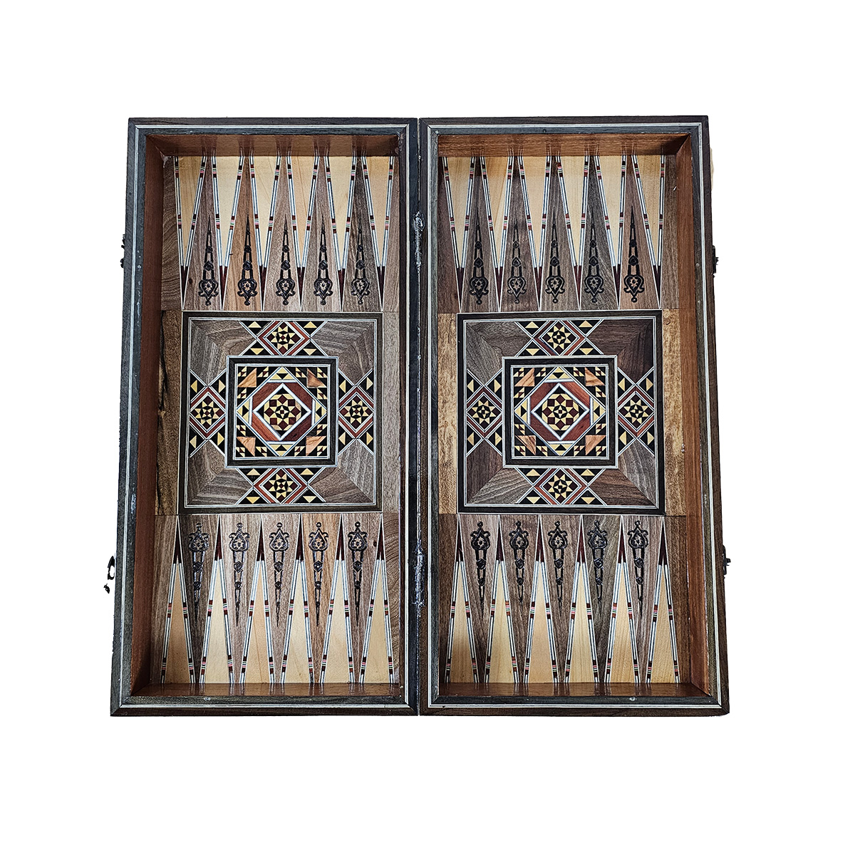 Syrian Mosaic Backgammon & Chess Set - Handcrafted Luxury Wood with Mother-of-Pearl Inlay