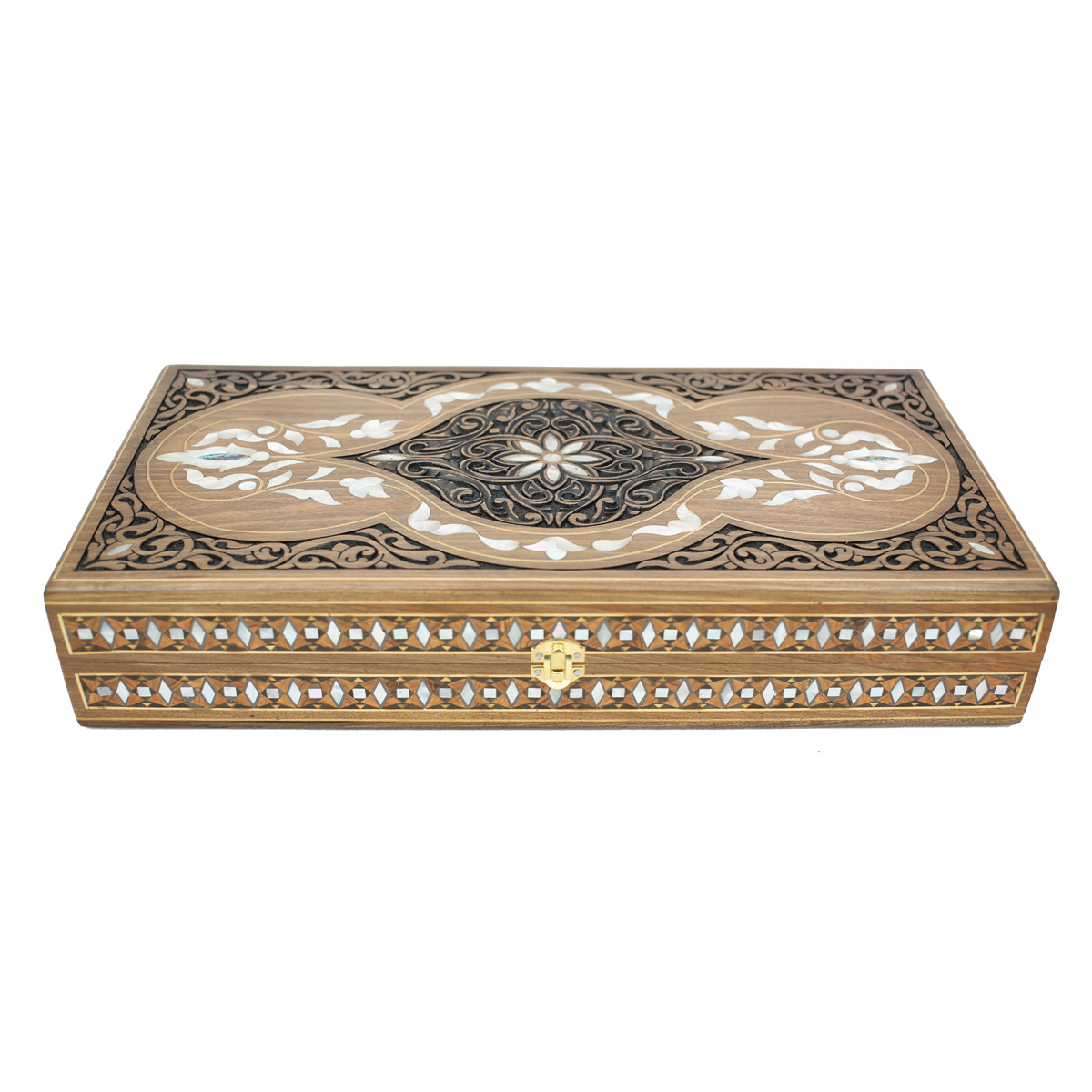 Carved Syrian mother of pearl backgammon, luxury handmade item with Fatimi-art