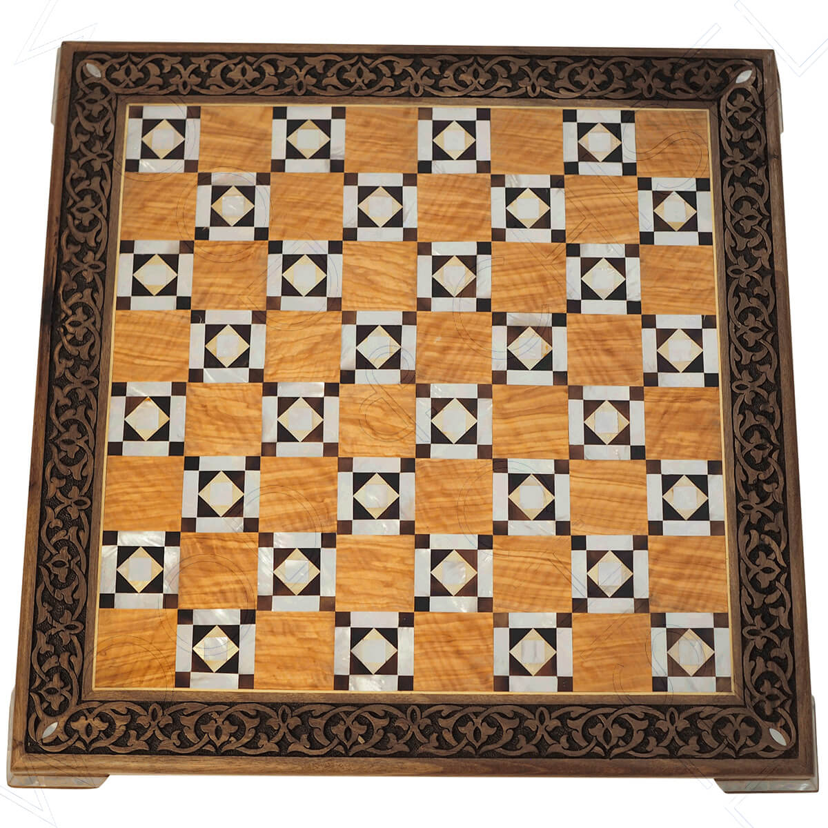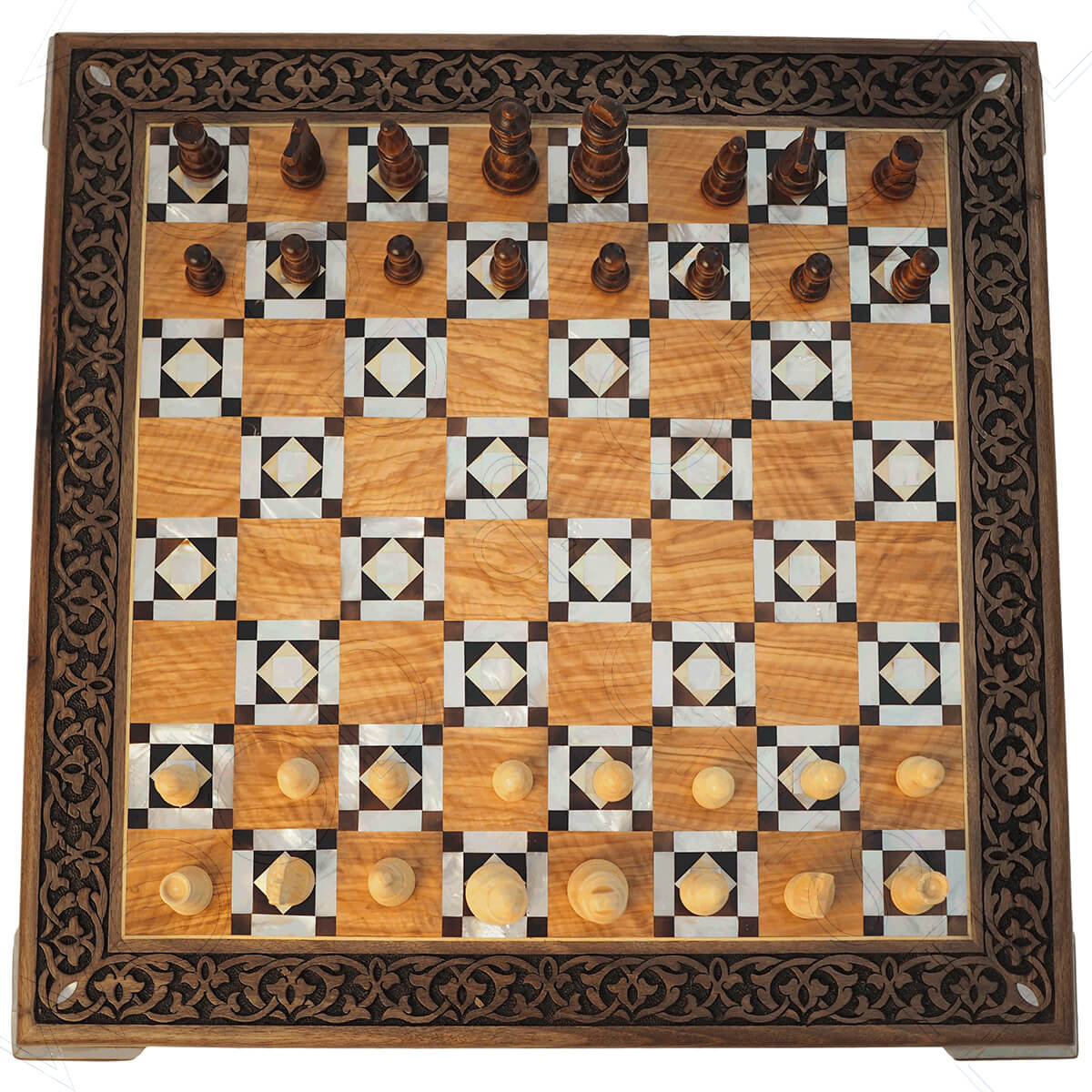 High quality carved chessboard inlaid with mother of pearl
