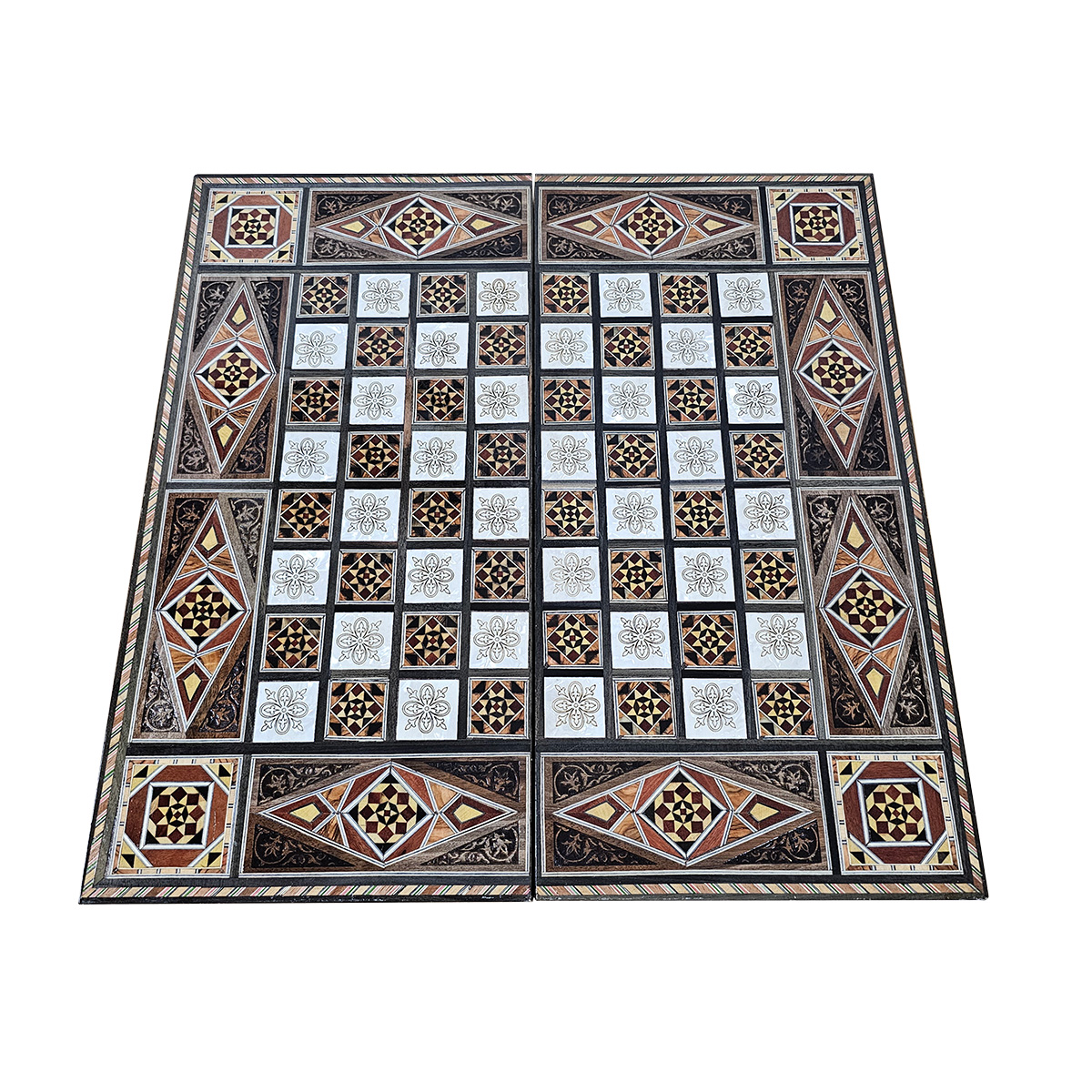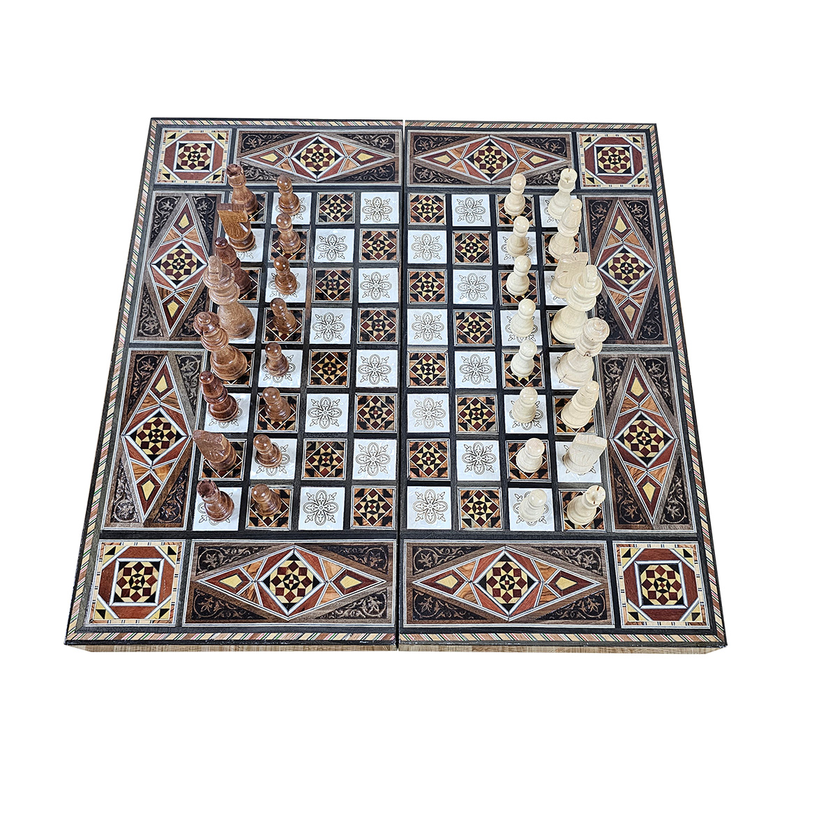 Syrian Mosaic Backgammon & Chess Set - Handcrafted Luxury Wood with Mother-of-Pearl Inlay