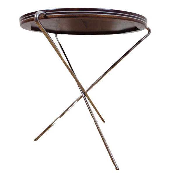 The sleek silver chrome base with intersecting legs provides a modern flair, creating a visually striking focal point. This handmade walnut coffee table brings elegance and sophistication, crafted to impress and elevate any interior.