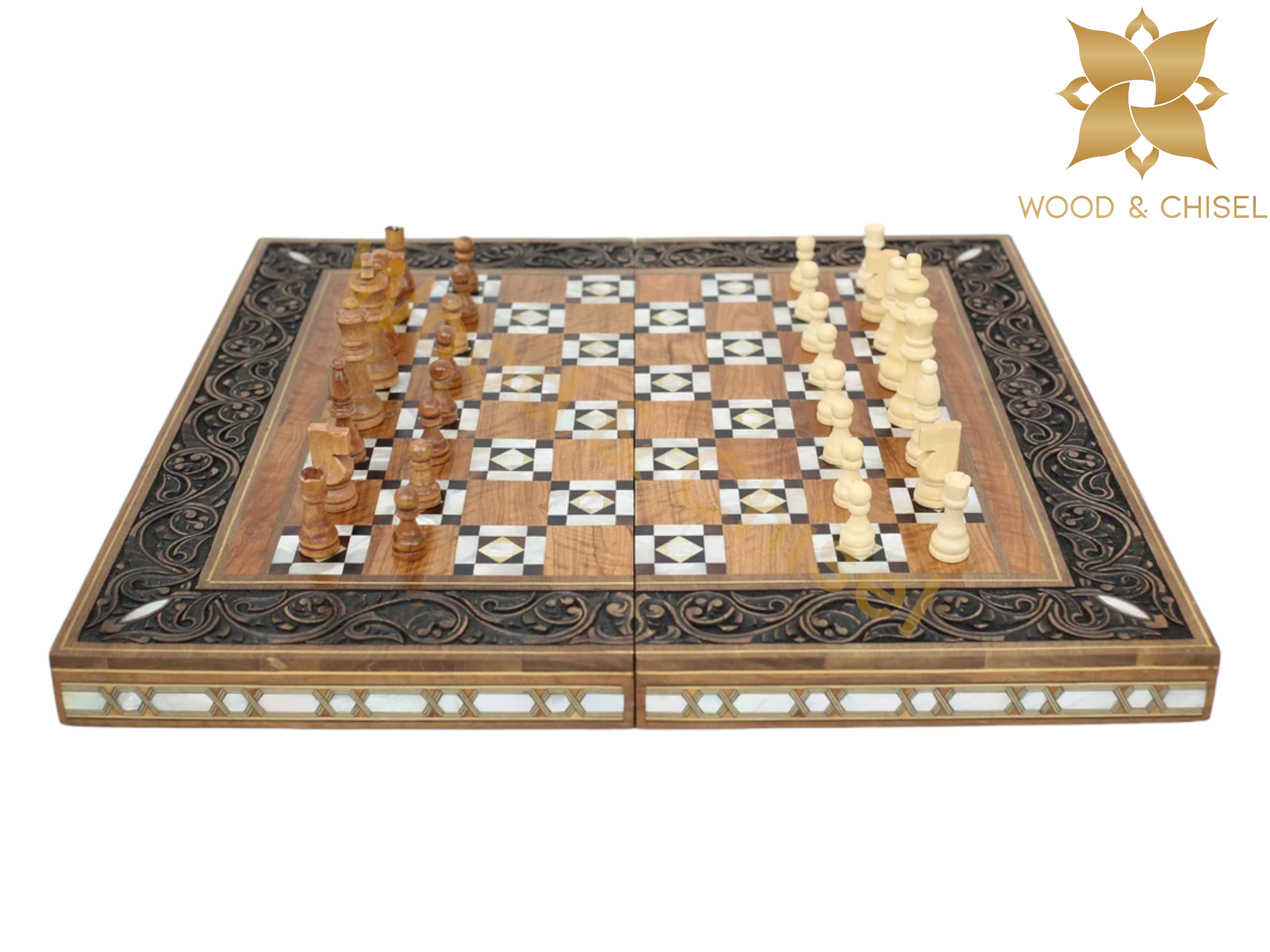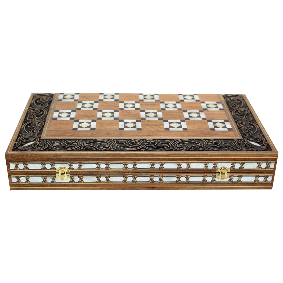 Exclusive Syrian mother of pearl Backgammon & Chessboard inlaid and carved by hand