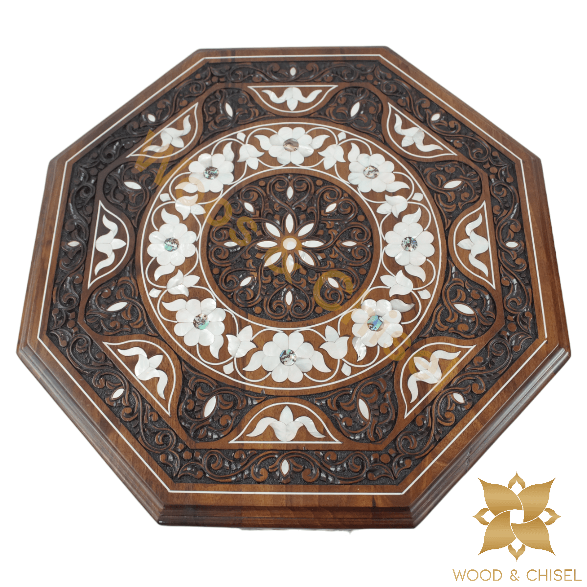Octagonal coffee table inlaid with mother of pearl- Fatimid carved