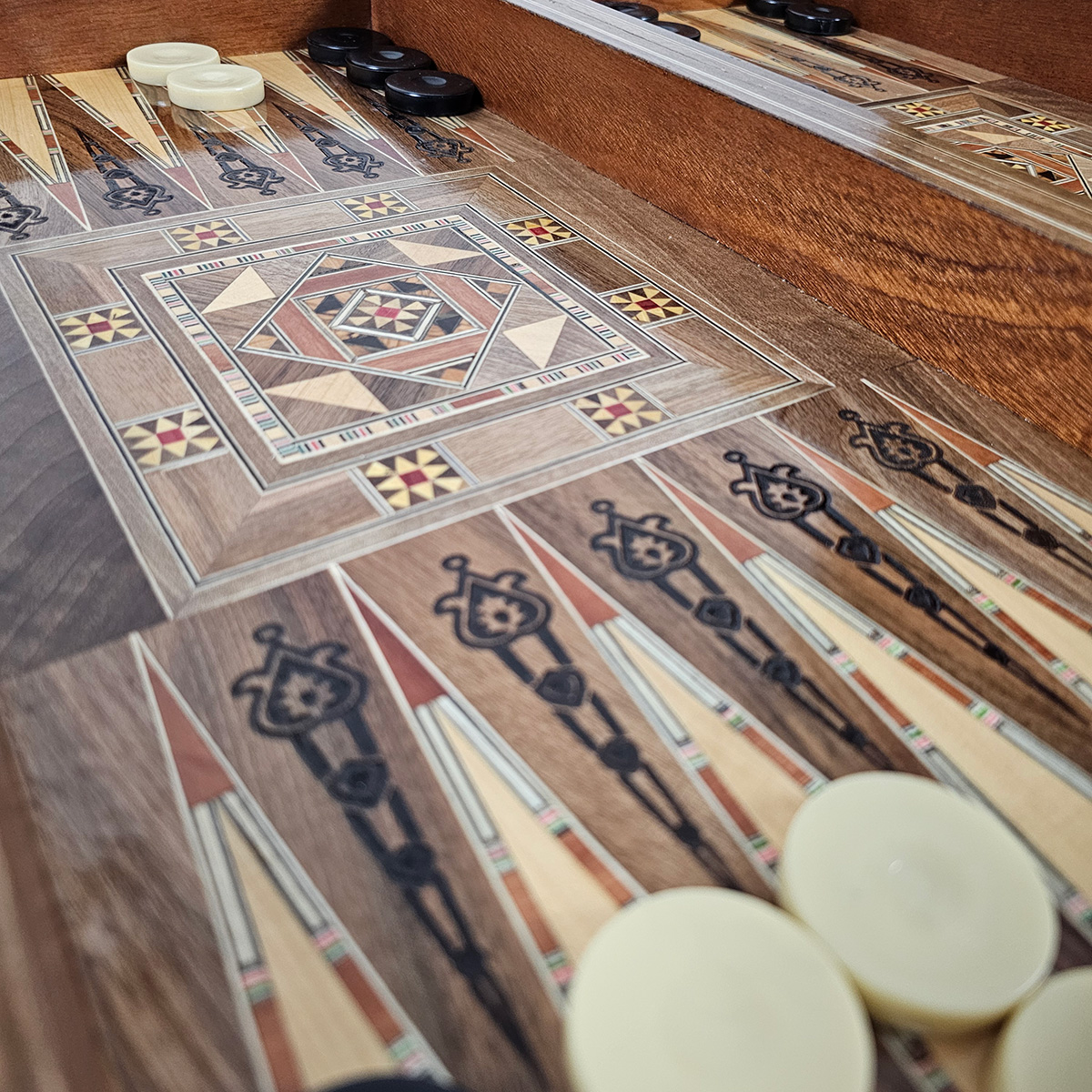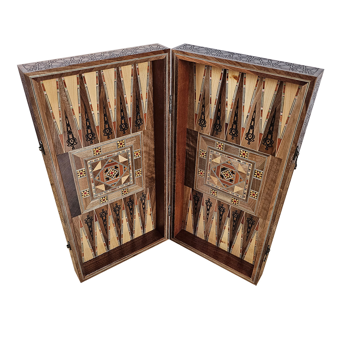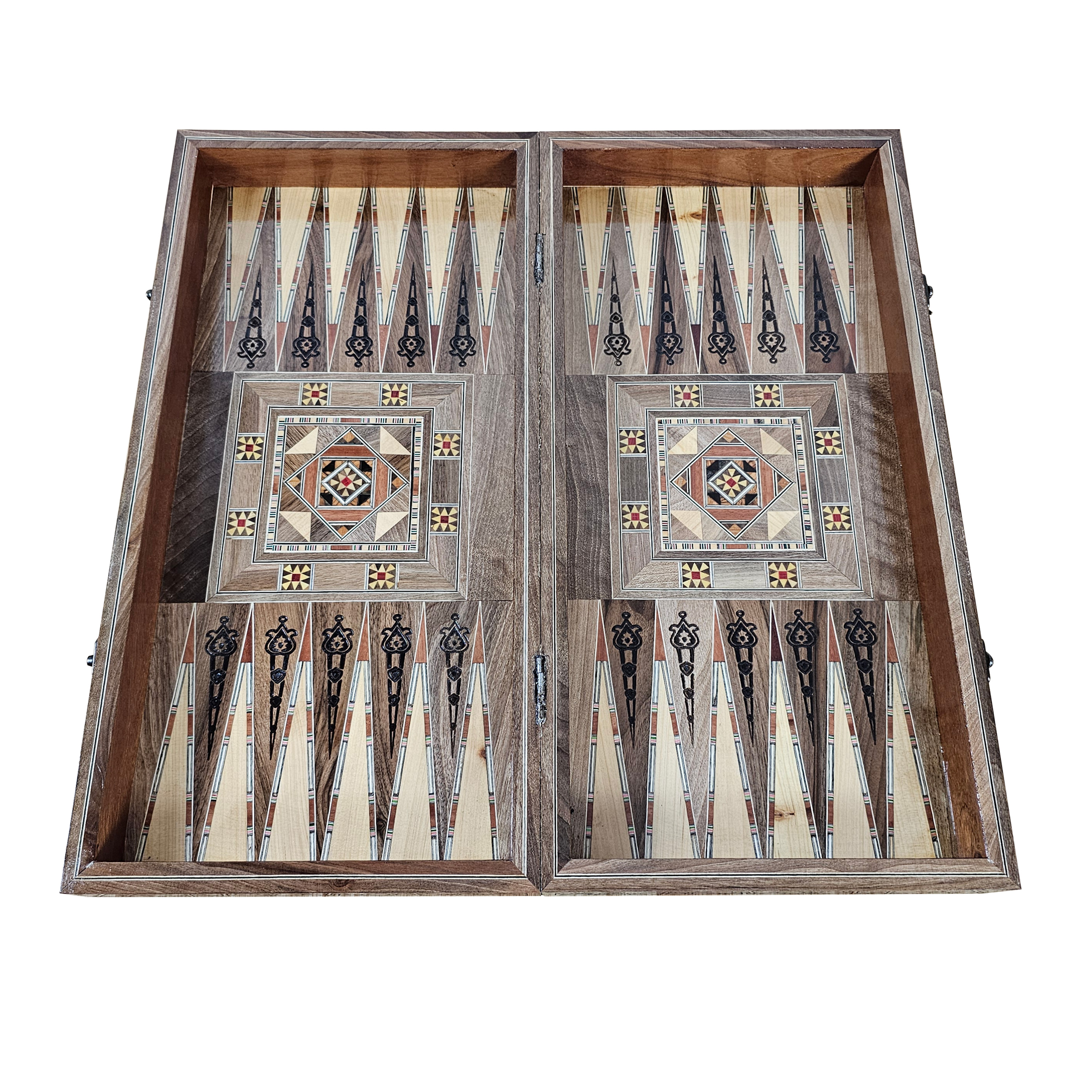Artisanal Syrian Mosaic Backgammon & Chess Set - Elegant Wood with Mother-of-Pearl Inlay